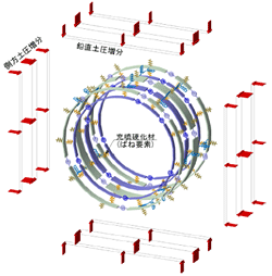 三次元FEM解析と二次元フレーム解析結果の比較例 5. 予想される事業実施効果本調査研究の補強方法の対象とするトンネルの大きさは直径2m程度の下水道トンネルから、直径10m程度の道路トンネルまで幅広く対応可能であり、補強リングの最適設計や補強に使用する機械設備などのコンパクト化と施工の迅速化によって、経済的に老朽化したトンネルを再生することができることから、市場規模の拡大に併せてインフラ施設再生事業として発展性が期待できる。 |