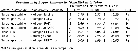 Table 3-4-2: The premium on pure hydrogen in Central Tokyo