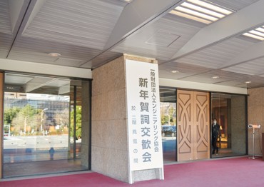 寺嶋清隆 理事長による新年の抱負・展望を述べる挨拶、そして祝宴の始まりを告げる乾杯のご発声があり、省庁、自治体、関連団体、会員企業等、参加された約900名の皆様は、グラスを手に旧年を振り返るとともに、新たな年への期待を語り合われていました。