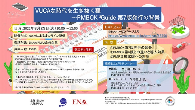 今般、PMI(Project Management Institute)のご協力を得て、最新版PBMOK 7th Edition発行の背景、目的などに立ち返って、疑問点にお応えできるセミナーとして、PMAJ共催にて開催いたします。